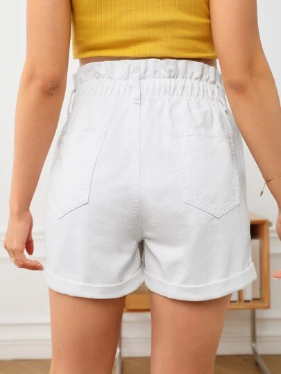 SHEIN Maternity Paperbag Waist Roll Up Hem Denim Shorts