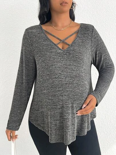 SHEIN Maternity Plus Crisscross Front Marled Knit Tee