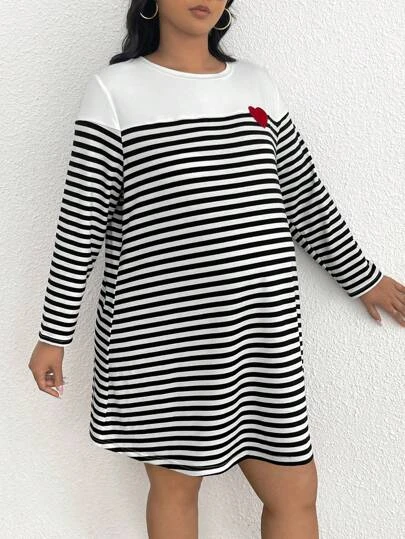 SHEIN Maternity Plus Striped Print Heart Embroidery Tee Dress