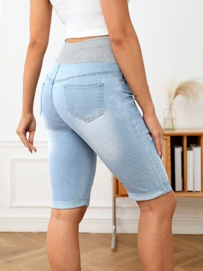 SHEIN Maternity Ripped Roll Up Hem Denim Shorts