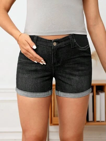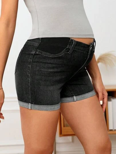 SHEIN Maternity Roll Up Hem Denim Shorts