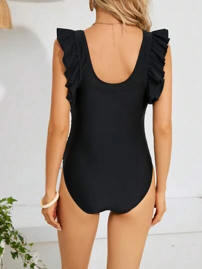 SHEIN Maternity Ruffle Trim Ruched Ruffle Trim One Piece Swimsuit