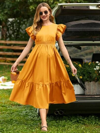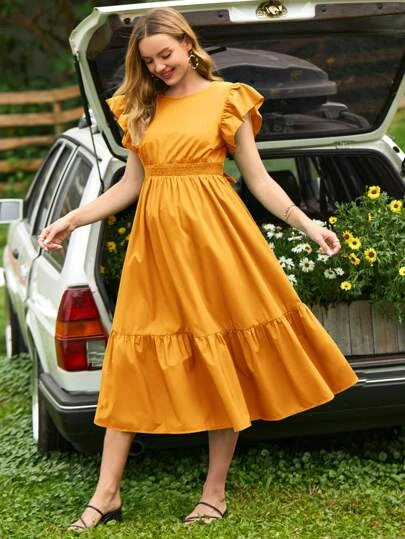 SHEIN Maternity Ruffle Trim Tie Backless Ruffle Hem Dress