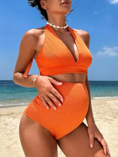 SHEIN Maternity Solid Halter Bikini Swimsuit