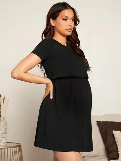 SHEIN Maternity Solid Nursing Detail Dress