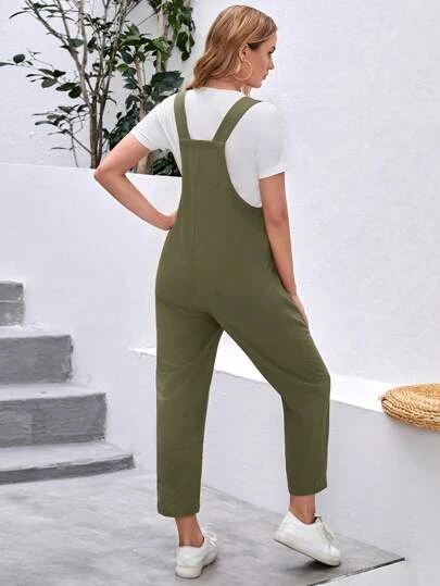 SHEIN Maternity Solid Pocket Patched Overall Jumpsuit Without Tee