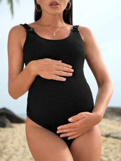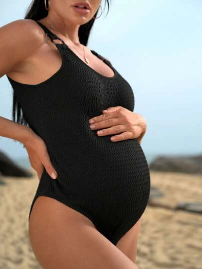 SHEIN Maternity Solid Ring Linked One Piece Swimsuit