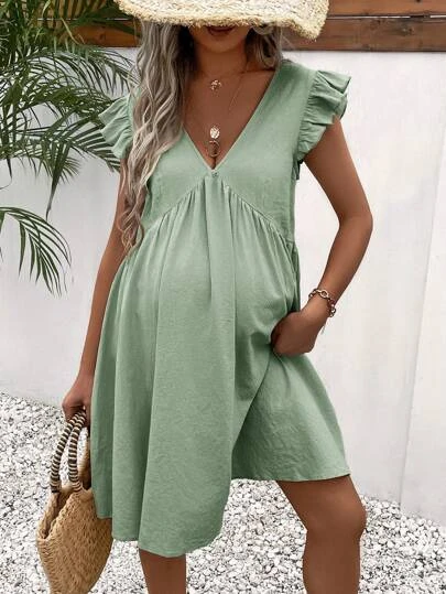 SHEIN Maternity Solid Ruffle Trim Smock Dress