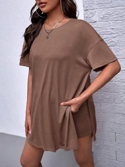 SHEIN Maternity Solid Split Hem Tee & Biker Shorts