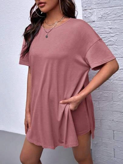 SHEIN Maternity Solid Split Hem Tee & Biker Shorts