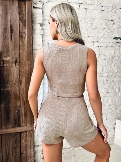 SHEIN Maternity Solid Tank Top & Adjustable Waist Shorts