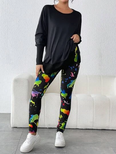 SHEIN Maternity Splash Ink Print Leggings