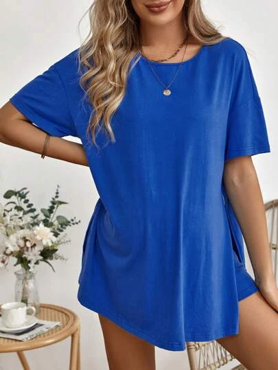 SHEIN Maternity Split Hem Tee & Adjustable Waist Biker Shorts