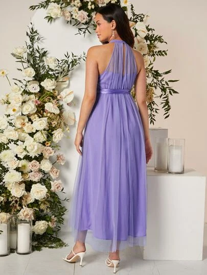 SHEIN Maternity Split Thigh Belted Mesh Halter Dress