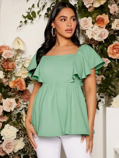 SHEIN Maternity Square Neck Butterfly Sleeve Peplum Blouse