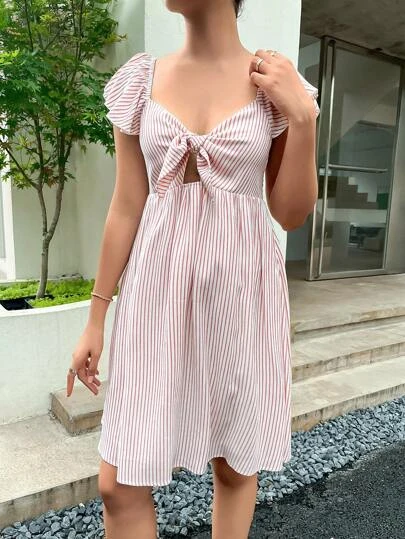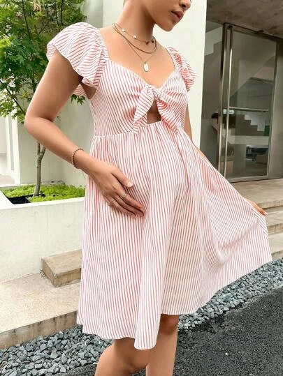 SHEIN Maternity Striped Print Knot Front Dress