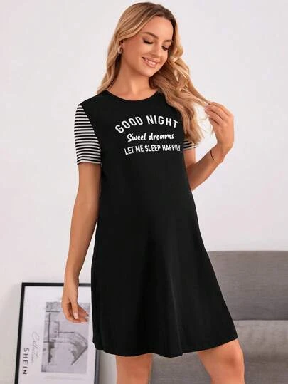SHEIN Maternity Striped & Slogan Graphic Tee Dress