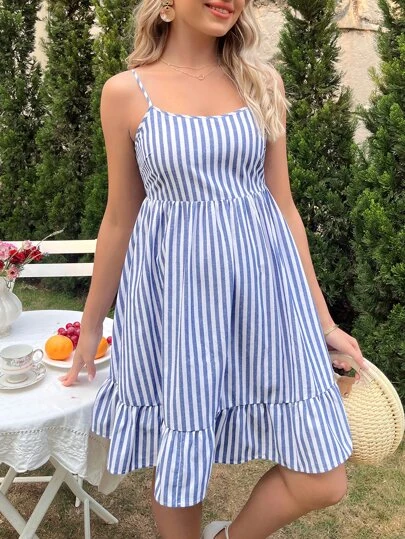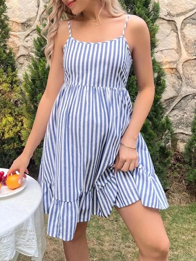 SHEIN Maternity Striped Tie Backless Ruffle Hem Cami Dress