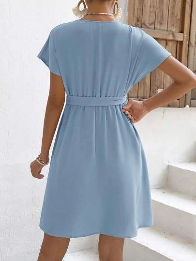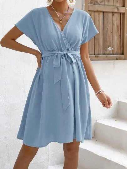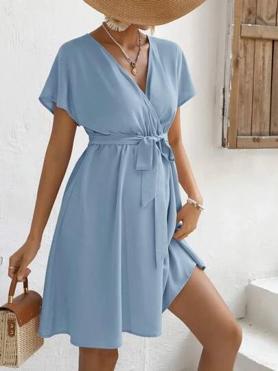 SHEIN Maternity Surplice Neck Batwing Sleeve Belted Dress