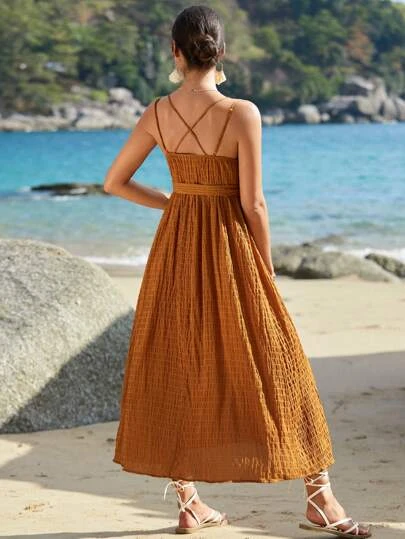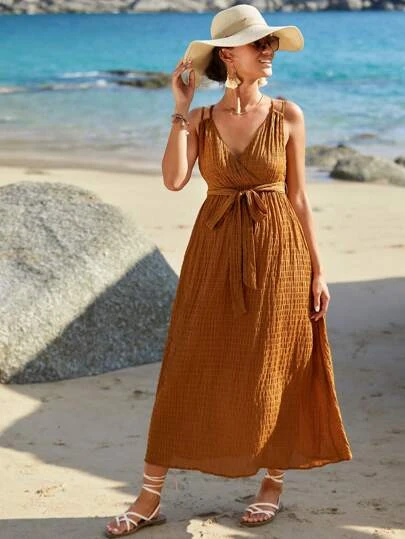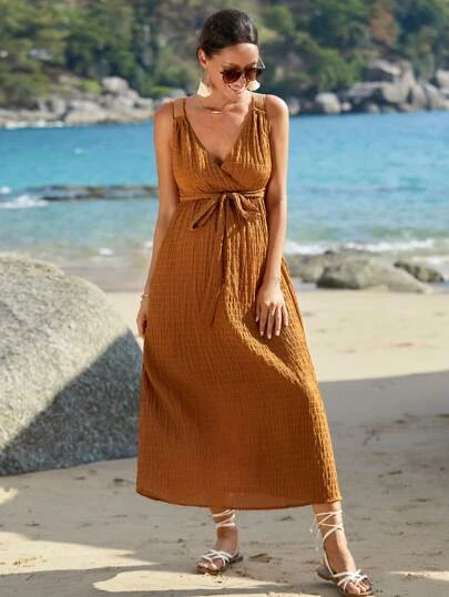 SHEIN Maternity Surplice Neck Belted Cami Dress