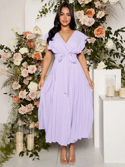 SHEIN Maternity Surplice Neck Pleated Hem Belted Dress