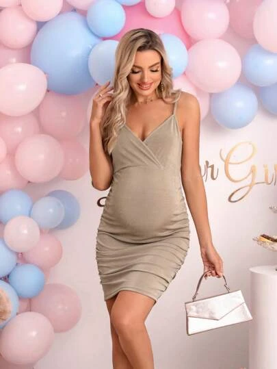 SHEIN Maternity Surplice Neck Ruched Side Cami Dress