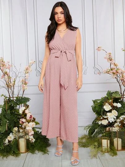 SHEIN Maternity Swiss Dot Belted Jumpsuit