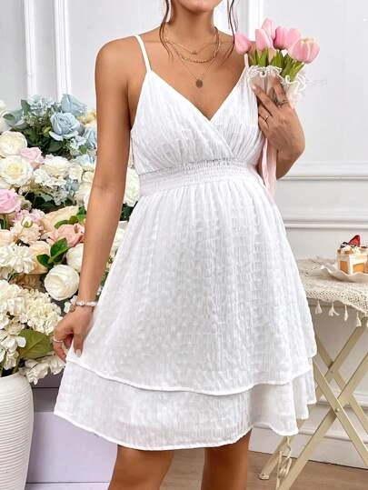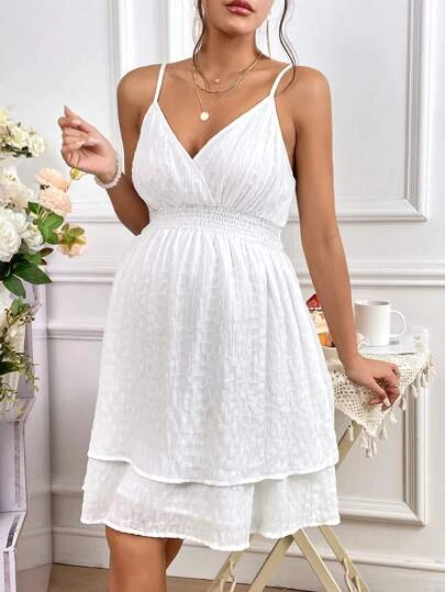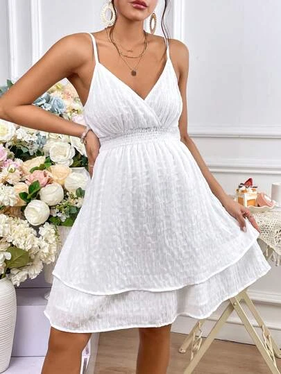 SHEIN Maternity Swiss Dot Two Layer Hem Cami Dress
