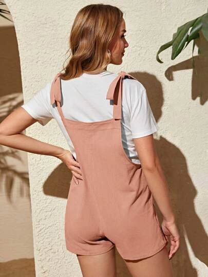 SHEIN Maternity Tie Shoulder Patch Pocket Knot Shoulder Pinafore Romper Without Tee