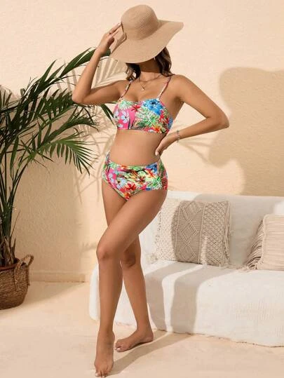 SHEIN Maternity Tropical Print High Waisted Bikini Swimsuit