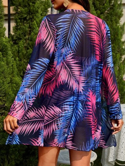 SHEIN Maternity Tropical Print Knot Front Bikini Swimsuit With Kimono