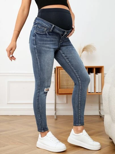 SHEIN Maternity Wideband Waist Ripped Frayed Skinny Jeans