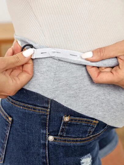 SHEIN Maternity Wideband Waist Ripped Roll Hem Denim Shorts