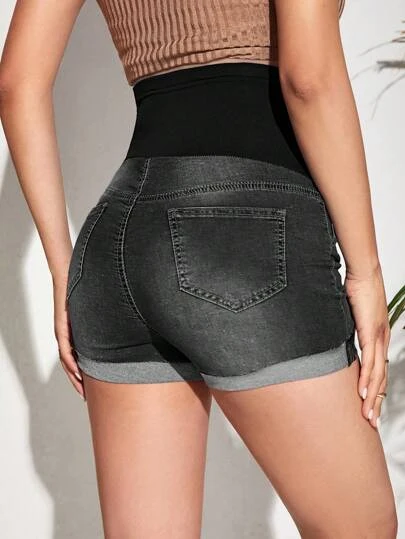 SHEIN Maternity Wideband Waist Roll Up Hem Denim Shorts