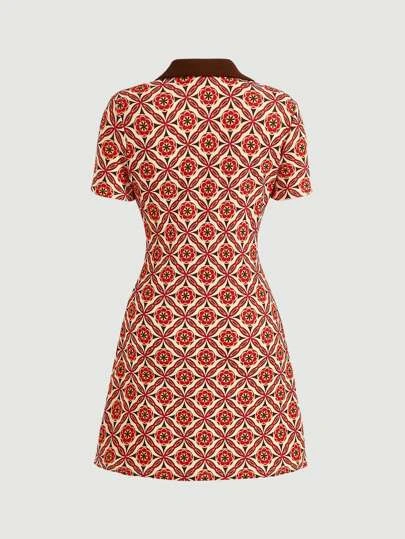 SHEIN MOD Floral Print Lapel Neck Shirt Dress