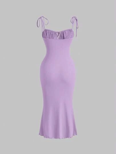 SHEIN MOD Tie Front Ruched Bust Knot Shoulder Cami Dress
