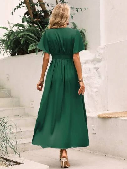 SHEIN Privé Plunging Neck Butterfly Sleeve Wrap Hem Dress