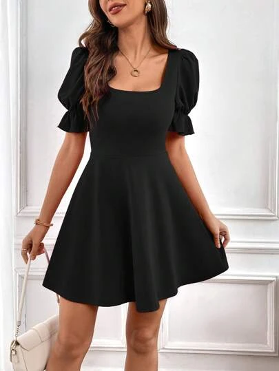 SHEIN Privé Square Neck Puff Sleeve Dress