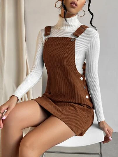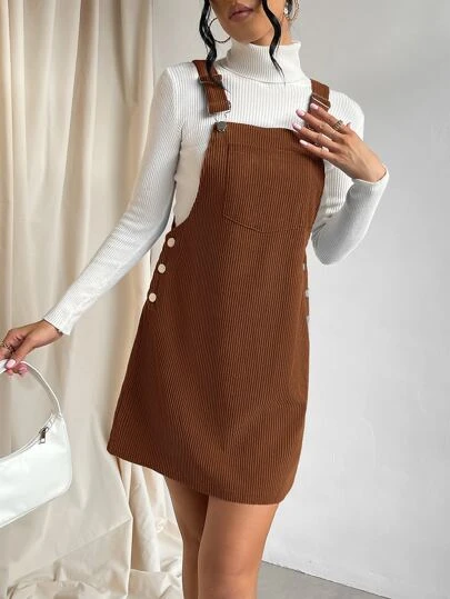 SHEIN Qutie Solid Pocket Patched Overall Dress Without Sweater