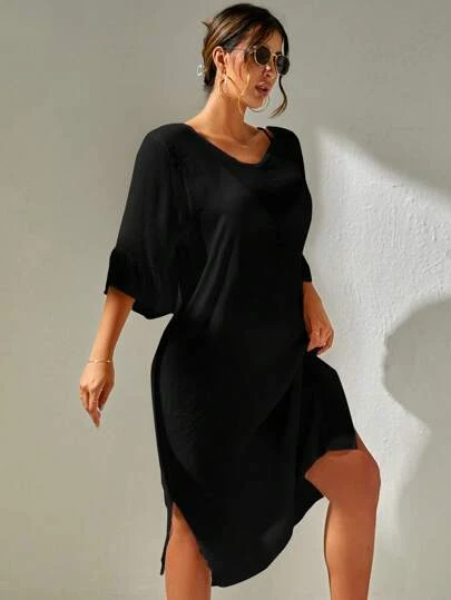 SHEIN Solid Split Thigh Cover Up Dress Without Bikini Set