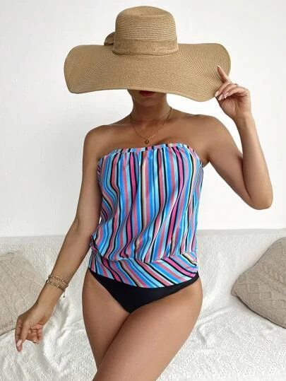SHEIN Striped Bandeau Bikini Swimsuit