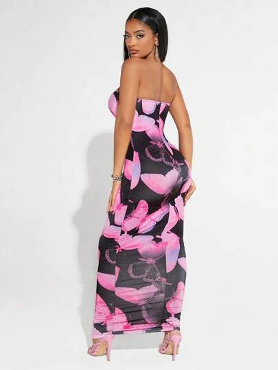 SHEIN SXY Butterfly Print Tube Bodycon Dress