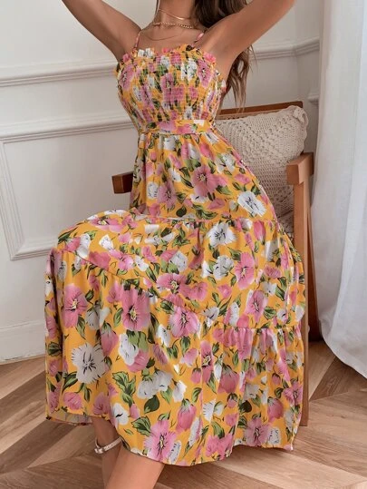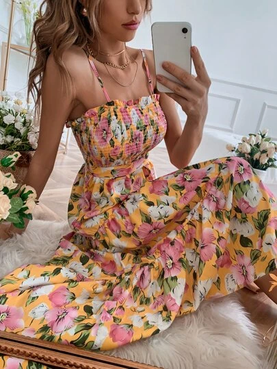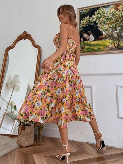 SHEIN VCAY Allover Floral Flounce Hem Cami Dress