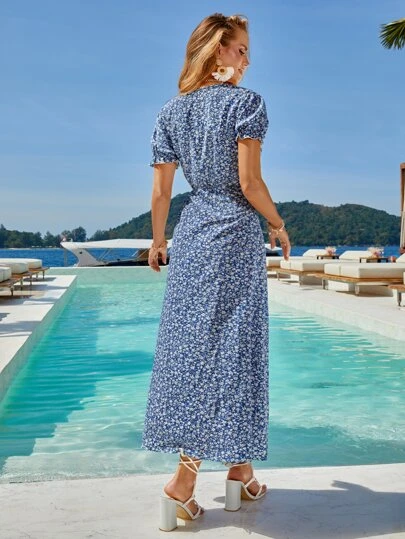SHEIN VCAY Ditsy Floral Tie Side Wrap Dress