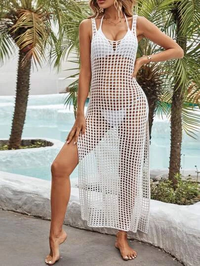 SHEIN VCAY Hollow Out Split Thigh Cover Up Dress Without Bikini