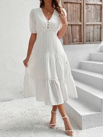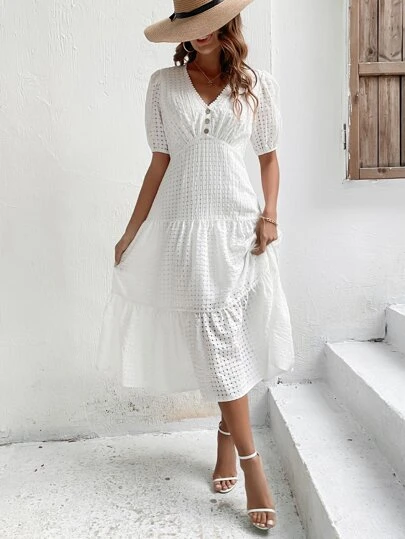 SHEIN VCAY Puff Sleeve Layered Hem Dress