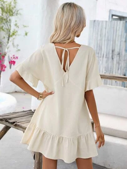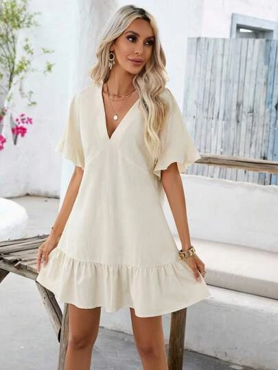 SHEIN VCAY Solid Ruffle Hem Smock Dress