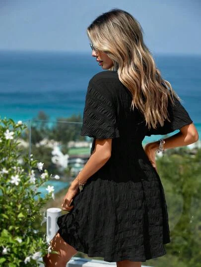 SHEIN VCAY Surplice Neck Butterfly Sleeve A-line Dress
