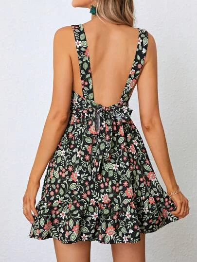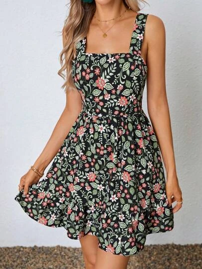 SHEIN WYWH Floral Print Ruffle Hem Cami Dress