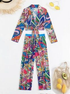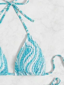 Allover Print Halter Triangle Bikini Swimsuit With Beach Skirt